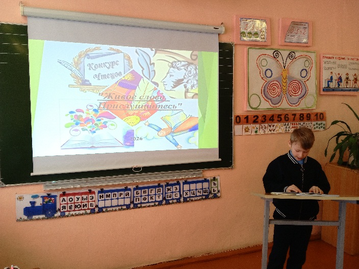 В целях пропаганды чтения среди детей, расширения их читательского кругозора и навыков адекватного восприятия печатной информации, возрождения традиций семейного чтения в школе 19 февраля 2026 года был проведен школьный этапа фестиваля творческого чтения «Живое слово. Прислушайтесь» в номинации «Послушайте, как я научился читать!».